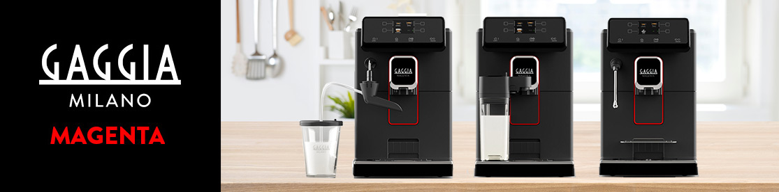 The Magenta line, conceived and made entirely in Italy, is composed of three models: Prestige, Milk and Plus, all characterized by a unique and qualitative design capable of embellishing any domestic destination environment. The prevailing color of these models is black but with a small note of red, a distinctive element of the Gaggia brand identity.